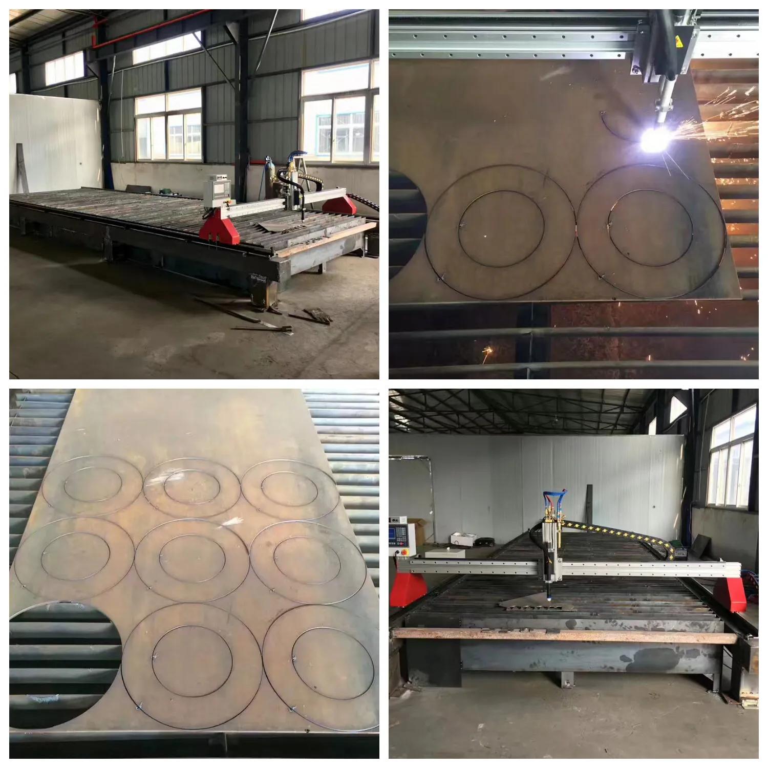 台式机常规切割面积为:1.5米✖️3米,可根据需要定制台面大小,最大切割面积不超过:长6米,宽2米。在这个尺寸内的都可以定制,标准配置为120A等离子电源,可以选装火焰切割和更大的等离子电源,但受限于机床结构,不建议切割超过30mm厚度的材料,如有切割更大面积和更大厚度,可以看下面2款龙门式数控切割机。